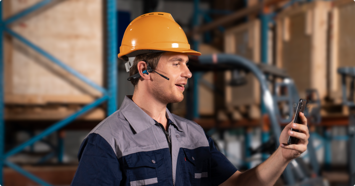 Frontline safety guidelines often prohibit traditional headphones or earplugs on the production floor, as they can block out essential sounds, creating safety risks in loud, fast-paced environments. The Shokz OpenComm headsets revolutionizes workplace audio with its innovative open-ear design. This design allows workers to stay alert to their surroundings while clearly communicating with their teams, fostering a safer, more connected work environment. With our open-ear advantage, frontline employees can confidently work in high-energy settings, enhancing both safety and productivity every day.